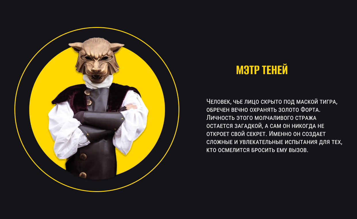 От 2,5 часов захватывающих испытаний по уникальной программе с профессиональными актерами и настоящими животными. Для взрослых и детей от 7 лет